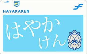 Greater Fukuoka’da tren ve otobüslerin yanısıra Kyusu & Hakodate’in bazı seçili ulaşım araçlarında için kullanılan ön ödemeli kart.